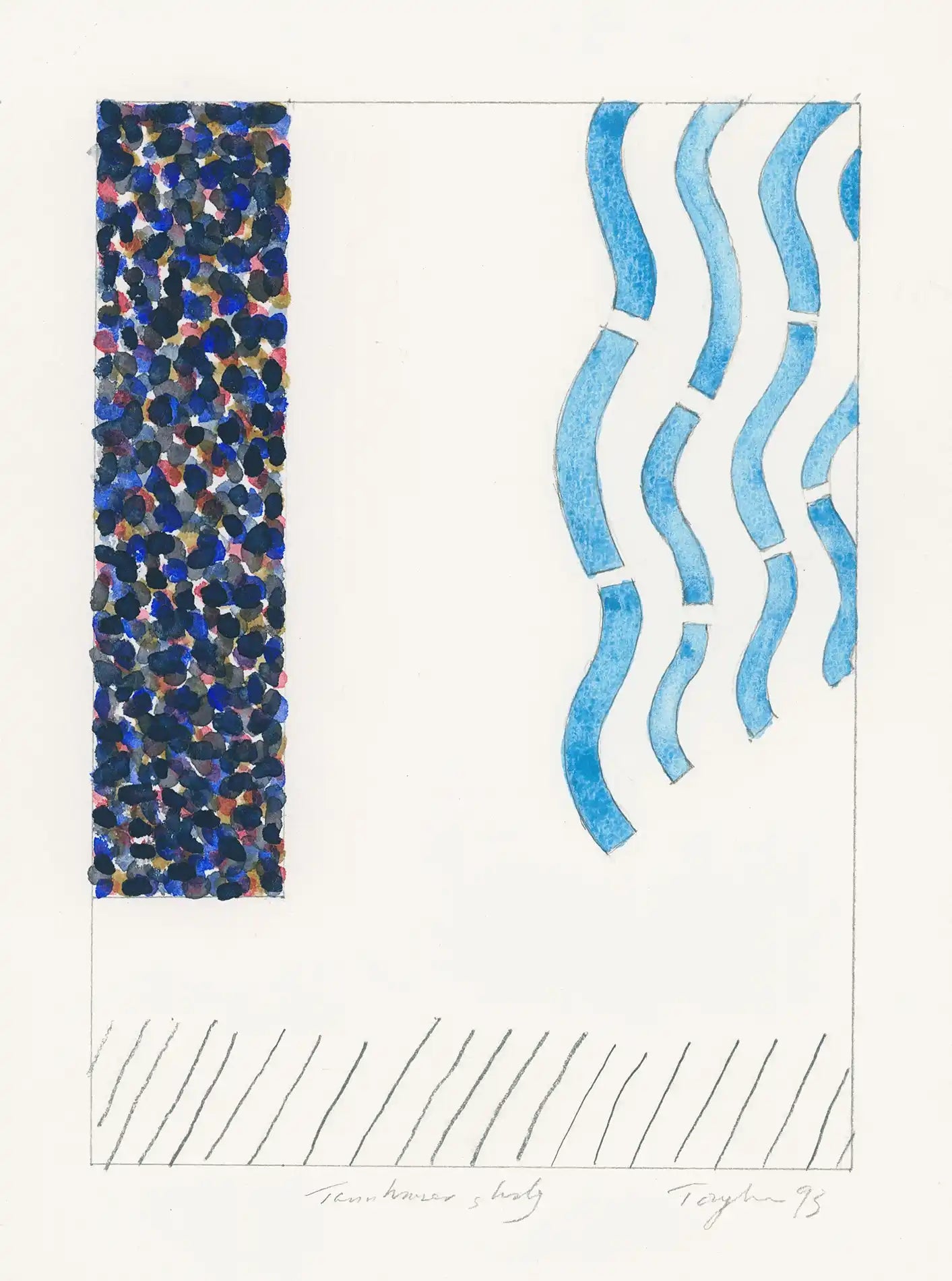 Tannhauser Study, created in 1993 by postmodern artist Anthony Lawrence, showcases a refined blue color scheme set against a crisp white background. This contemporary watercolour and pencil artwork measures 35cm by 30cm, highlighting Lawrence's precise technique and thoughtful composition. Ideal for collectors appreciating subtle, layered artistry with a modern aesthetic.